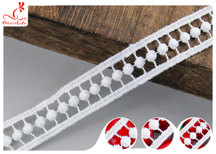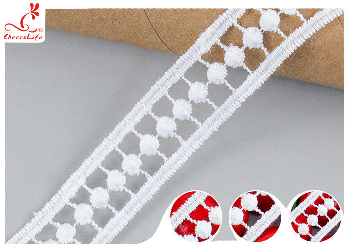 2 সেমি হোয়াইট জিপুর ব্রোডারিড লেস ট্রিম সহ পলি মিল্ক সিল্ক পাস OEKO TEX 100