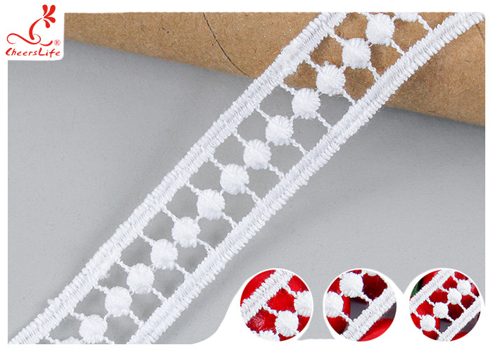 ২ সেমি হোয়াইট জিপুর ব্রোডারিড লেস ট্রিম উইথ পলি মিল্ক সিল্ক পাস OEKO TEX 100 স্থায়ী রঙ দেখায়, পোশাকের জন্য উপযুক্তকারখানার ভর উৎপাদন.