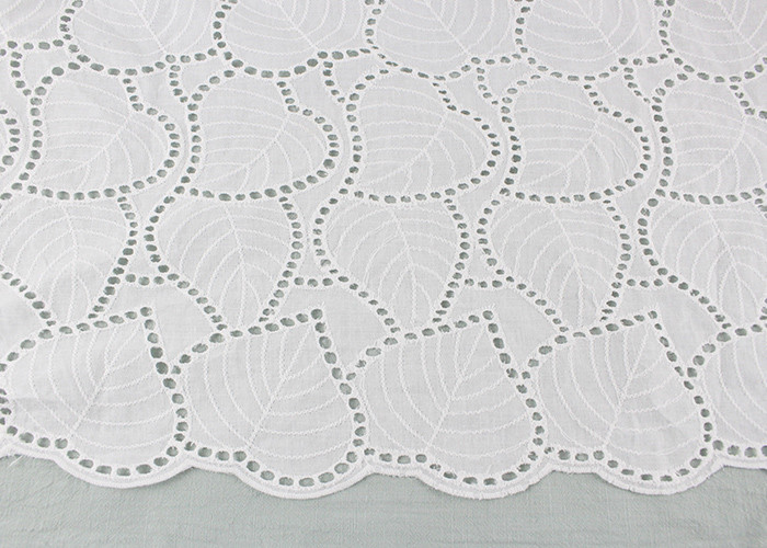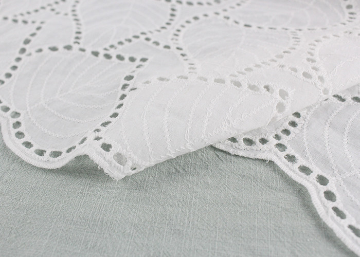 সাদা আইলেট কটন লেস ফ্যাব্রিক পাতা এমব্রয়ডারি প্যাটার্ন ড্রেস ব্লাউজের জন্য