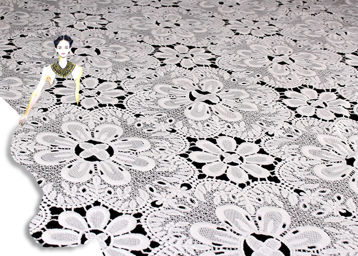 ভেনিস গিউপিউর সূচিকর্মিত ফুলের তুলা লেন্সের ফ্যাব্রিক এজো ফ্রি ডাইড ডিটিএম রঙ